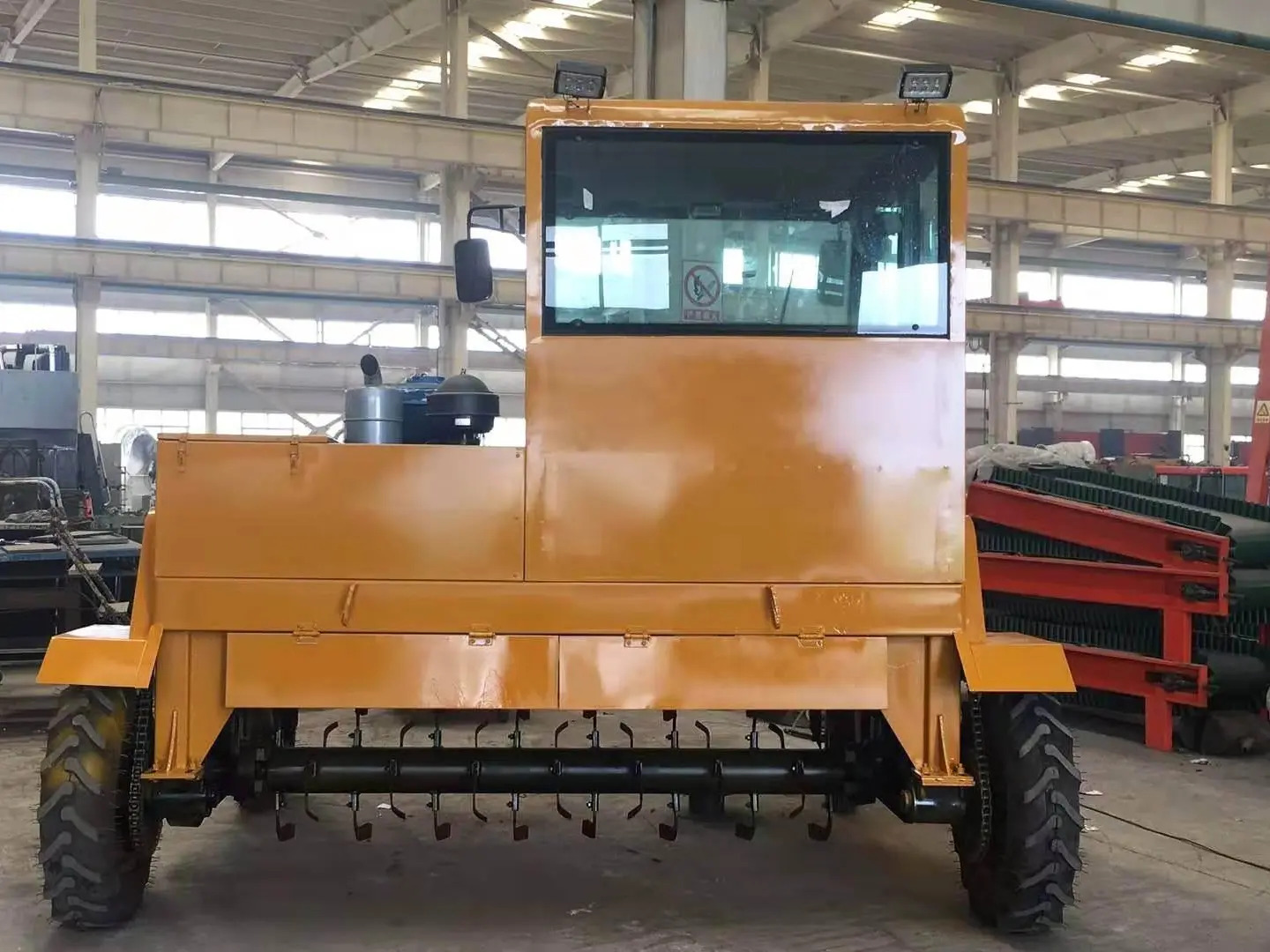 4.山德環(huán)保行走式翻堆機可以安裝一些附屬裝置,比如自動噴淋設(shè)備,可以在設(shè)備翻拋時,調(diào)節(jié)肥堆的濕度,加快有機物發(fā)酵的進程。
